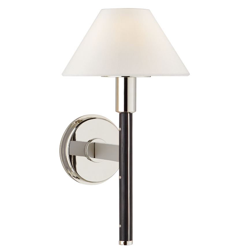 Radford Small Sconce in Polished Nickel and Black Ebony with Linen Shade