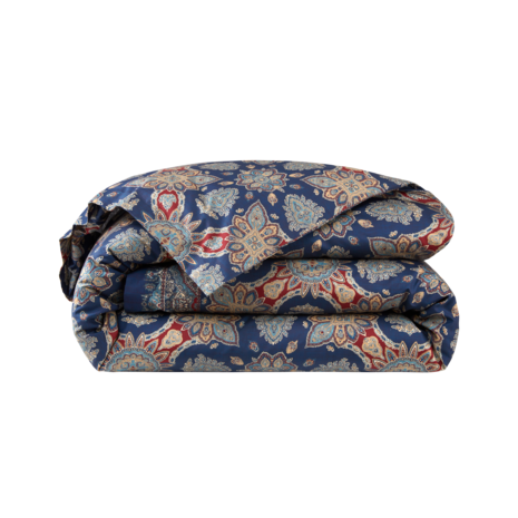 Distinguished by its rich, jewel-tone paisley print, the Archer collection makes a contemporary statement with heritage character. Finely woven from silky sateen, the foulard-inspired motif is paired with cotton sheeting, plush quilted shams, and textural knit blankets.Duvet cover, 100% cotton, printed sateen, 300 threads/ sq inch².
