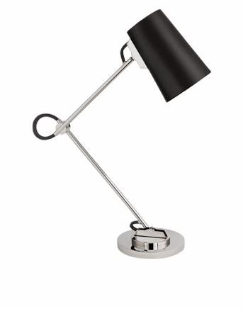 Benton Adjustable Desk Lamp in Polished Nickel with Chocolate Leather Shade