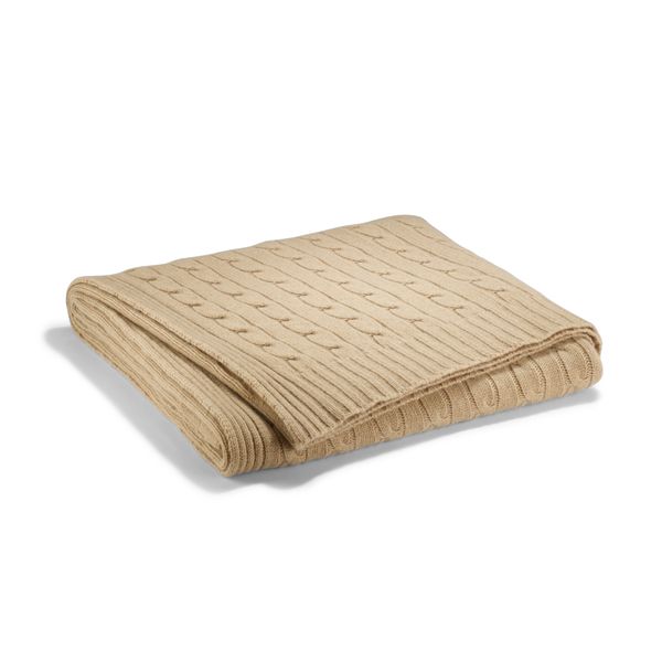 This luxurious blanket is crafted from our signature cable-knit cashmere.Ribbed edges.