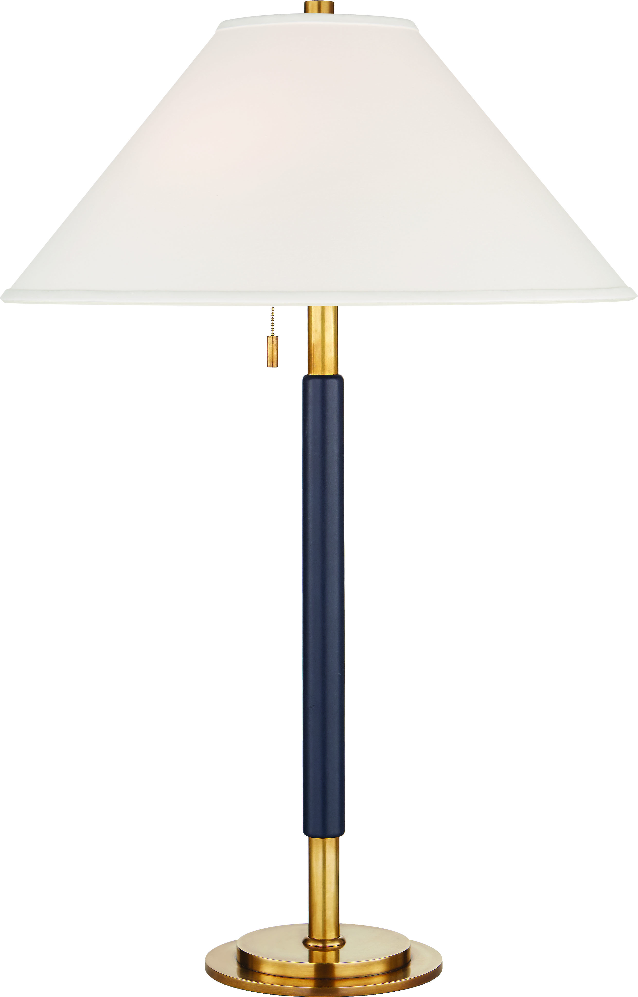 Garner in Natural Brass and Navy Leather with Percale Shade
